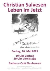 Herzliche Einladung nach Blaubeuren ins Badhaus-Café am Kirchplatz 5. Nach einer Einführung mit praktischen Demonstrationen zum Thema „Leben im Jetzt“ wird etwa um 20 Uhr eine Ausstellung mit einer Auswahl meiner Werke eröffnet. Dazu gibt es musikalische Einlagen und es werden Häppchen gereicht. Das Badhaus-Café veranstaltet diesen Abend in Kooperation mit dem Bücherpunkt in Blaubeuren.